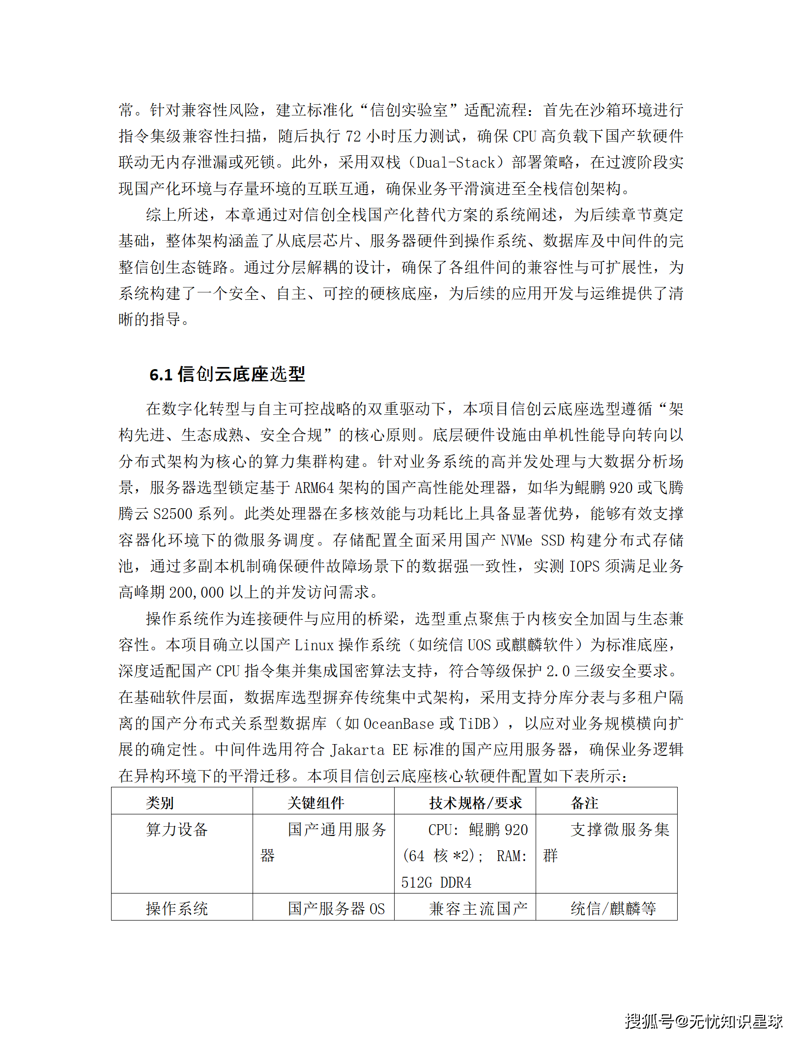 在技术栈的选择上,本方案展现了极强的前瞻性与合规性,全面拥抱**信创(信息技术应用创新)**生态。