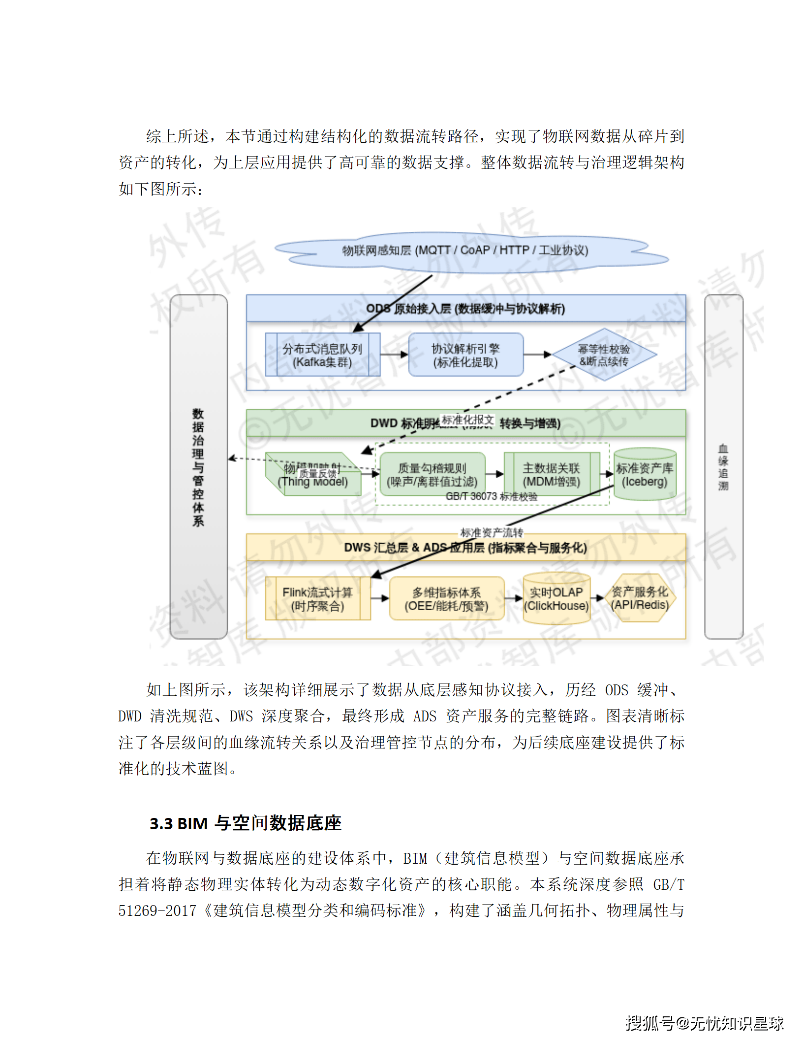 - 数据流转机制:ODS层: 接入原始报文,执行幂等性校验。DWD层: 基于 GB/T 36073-2018 标准进行语义化映射与噪声过滤,格式标准化率要求 > 99.9% 。DWS/ADS层: 利用 Flink 引擎进行分钟级指标预汇总,构建碳效比等核心指标体系。
