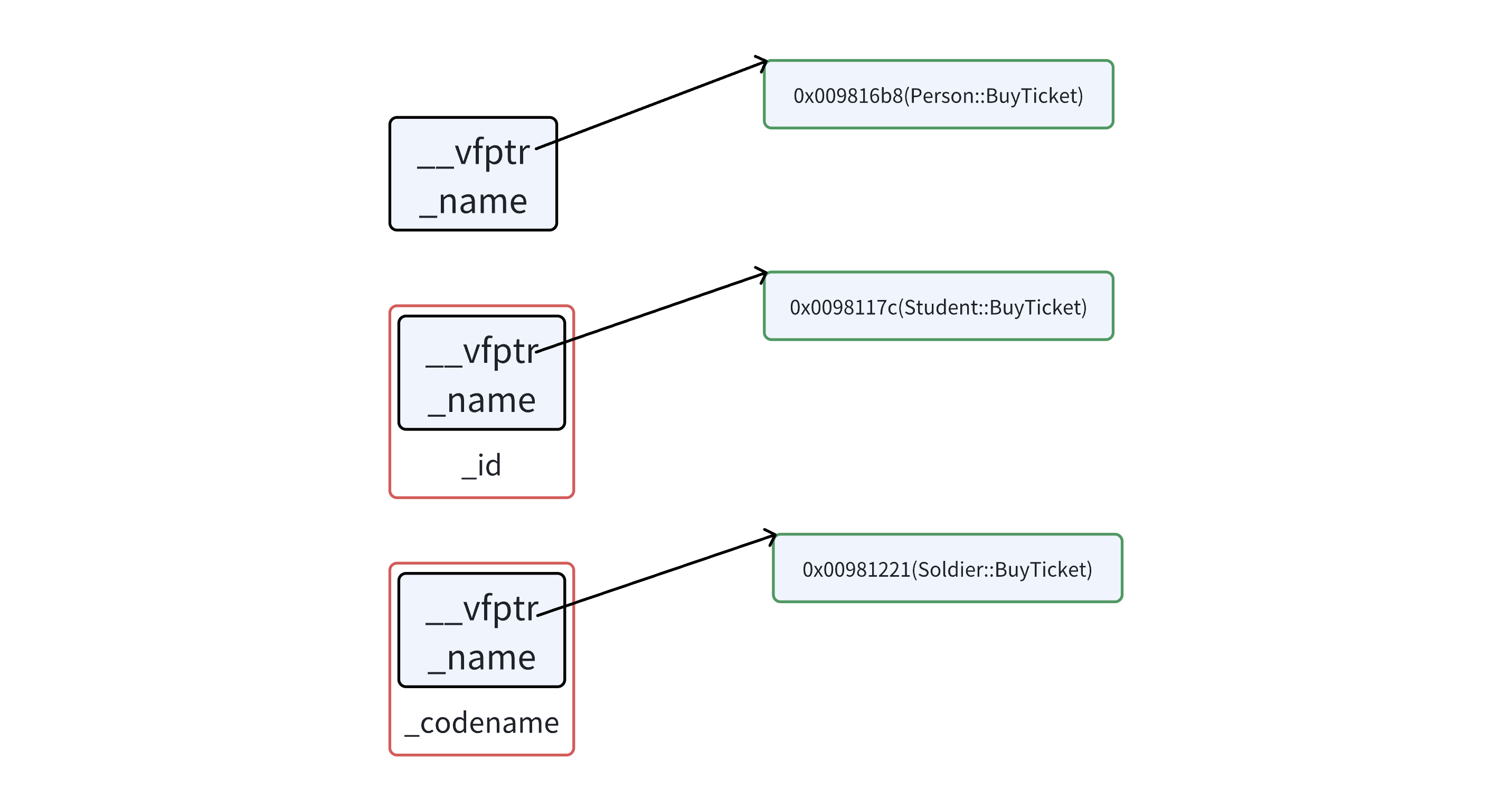 - 访问 vptr :程序通过对象地址,读取位于首部的