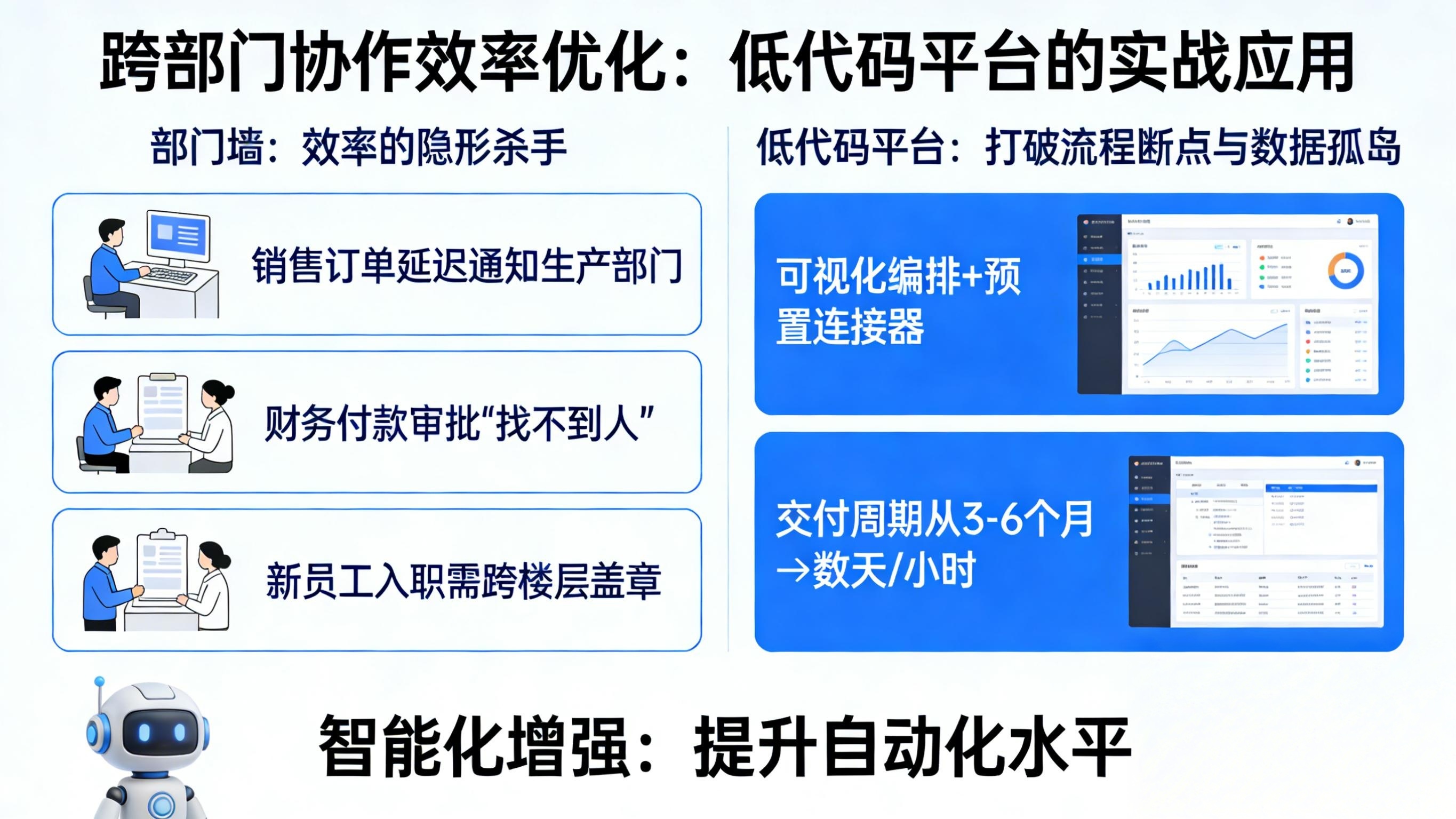 据行业观察,采用传统开发模式构建跨系统工作流,平均需要3-6个月的交付周期,且后期调整成本极高。而低代码平台通过可视化编排与预置连接器的组合,正在将这一周期压缩至数天甚至数小时。本文将从实战视角,探讨如何利用现代低代码技术重构跨部门协同,并重点分析智能化增强 如何进一步提升自动化水平。