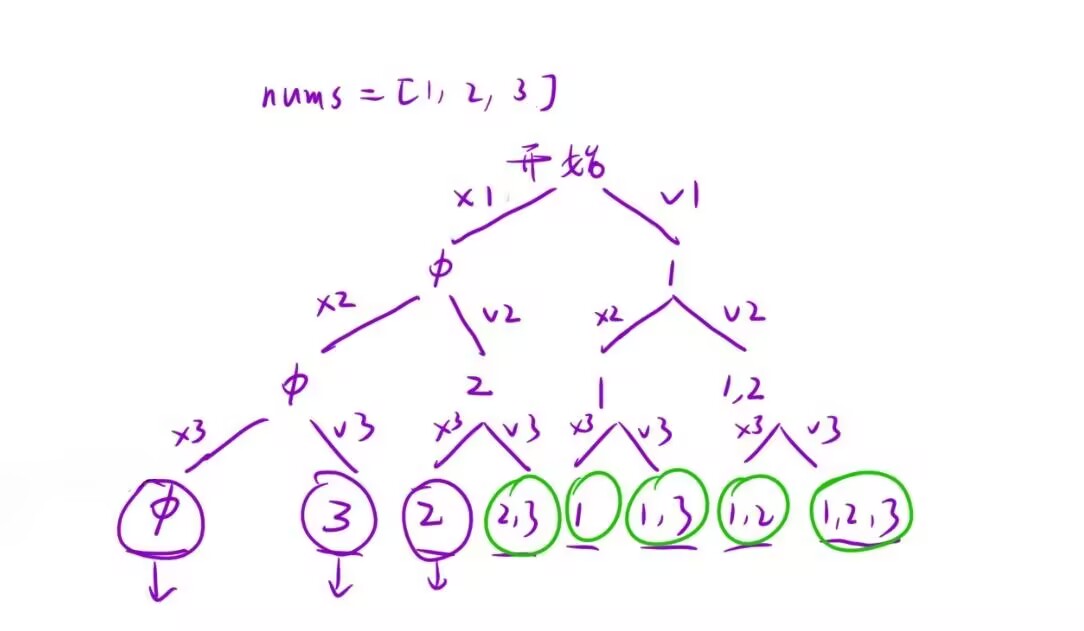 - 对于【子集问题】我们可以对每个元素进行"留或不留"的决策,这是对于找子集问题的特点(包含不包含?不考虑排列)而推导出的方法。