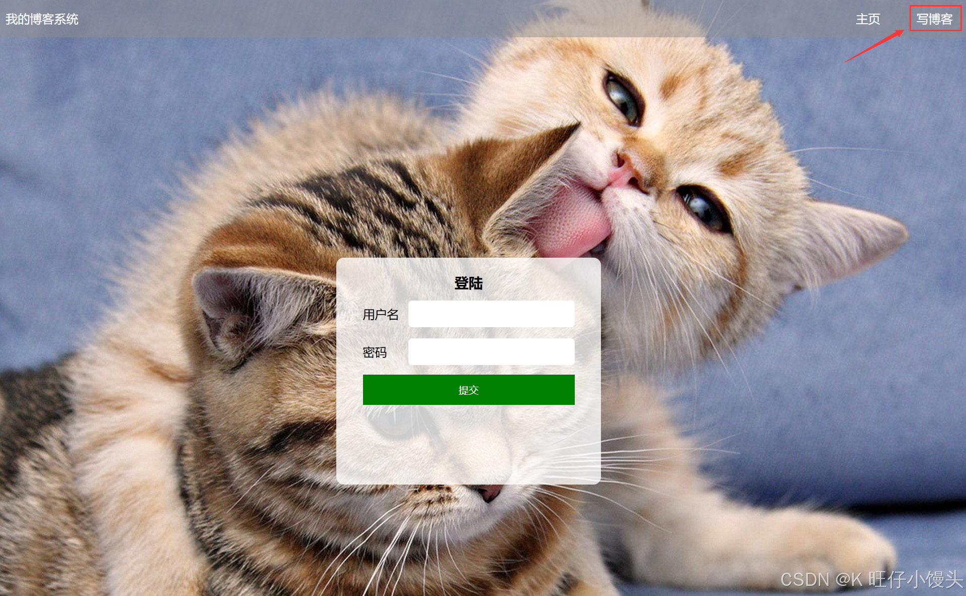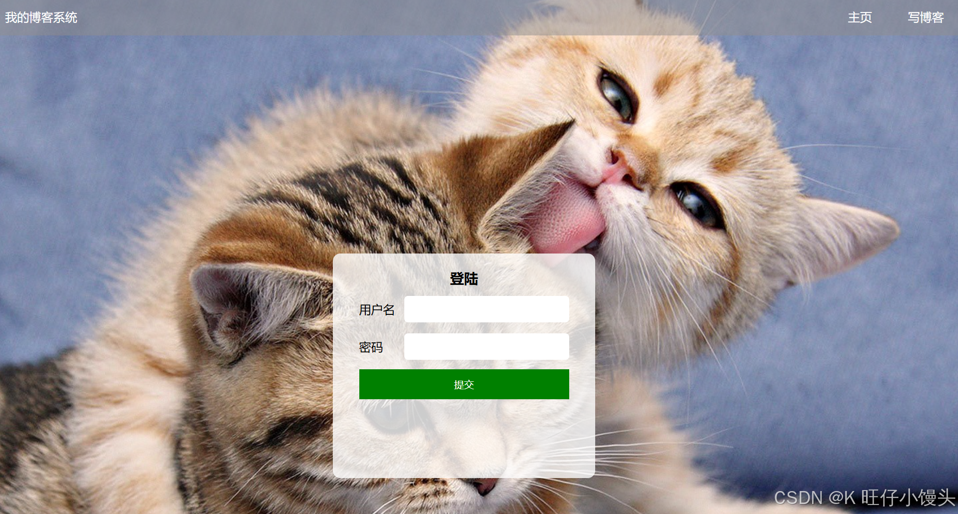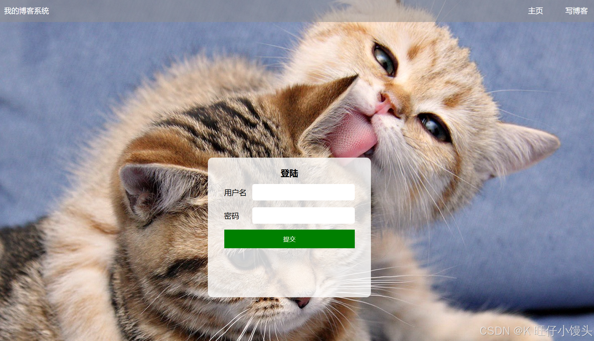 系统使用预先在数据库中设置好的账号和密码进行登录,不提供用户注册功能。输入正确的用户名和密码,登录成功后跳转到博客首页。