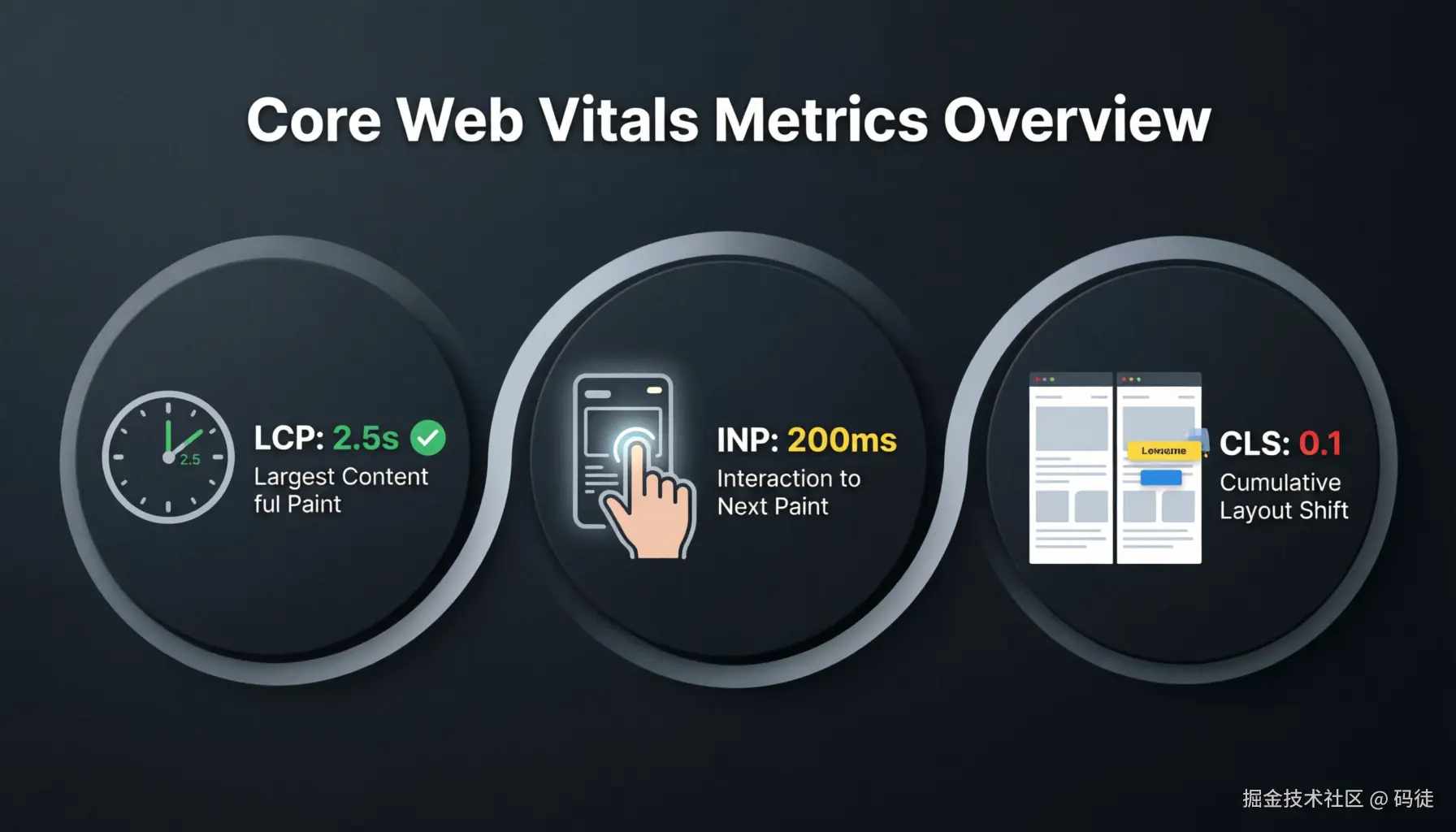 把 Core Web Vitals 监控纳入你的日常开发流程。Lighthouse CI 可以在每次提交时自动跑性能检查,把 INP、LCP、CLS 作为 CI 的红线指标。与其上线后再优化,不如在开发阶段就守住性能底线。