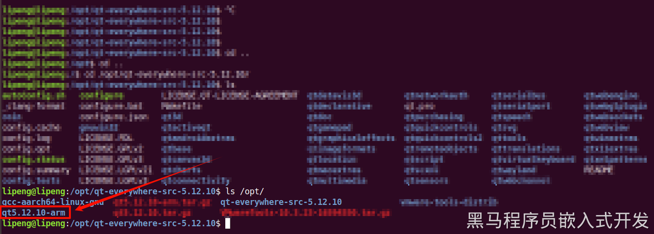 一段时间后,可以看见/opt目录下出现了我们指定的安装目录/opt/qt5.12.10-arm,表示安装成功。