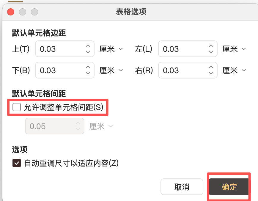 - 点击选项,将"默认单元格间距"下的"允许调整单元格间距"框框取消勾选,点击确定即可恢复正常的表格样式。