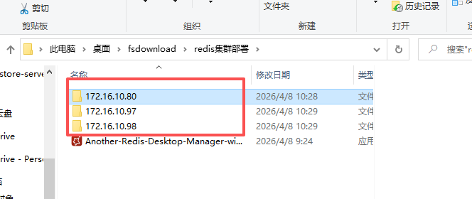 将 redis集群部署\ip\redis-cluster 文件夹上传到对应服务器 /home 文件夹下