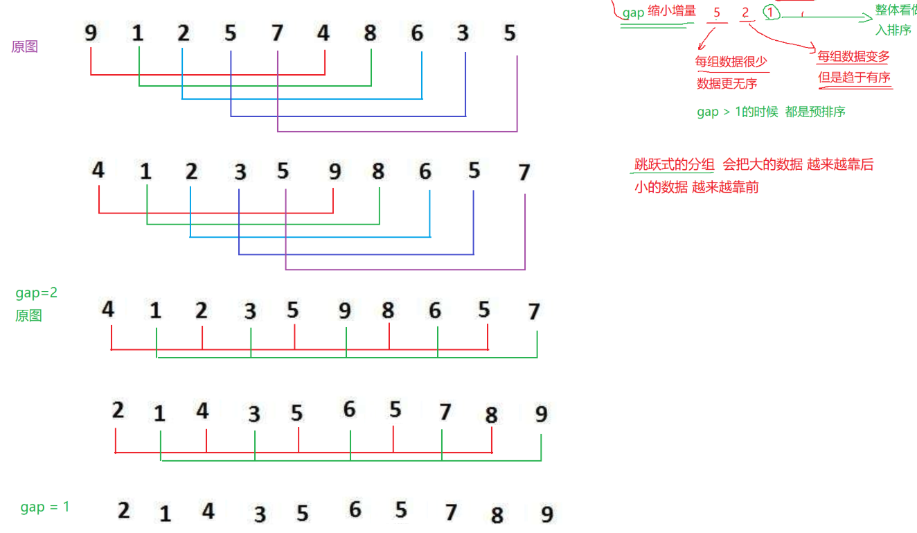 希尔排序法又称缩小增量法。希尔排序法的基本思想是: 先选定一个整数,把待排序文件中所有记录分成多个组, 所有距离为的记录分在同一组内,并对每一组内的记录进行排序。然后,取,重复上述分组和排序的工作。当到达 =1 时,所有记录在统一组内排好序 。
