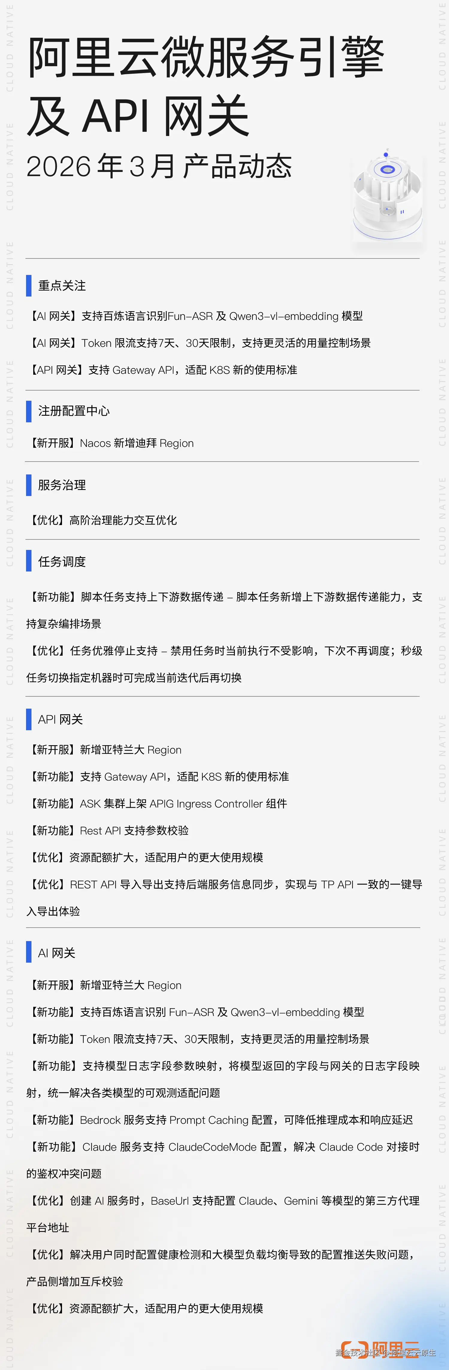阿里云微服务引擎 MSE 及 API 网关 2026 年 3 月产品动态