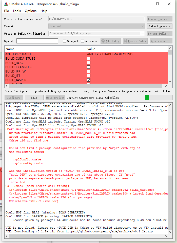 二、cmake-gui生成mingw工程 {#二cmake-gui生成mingw工程 .unnumbered}