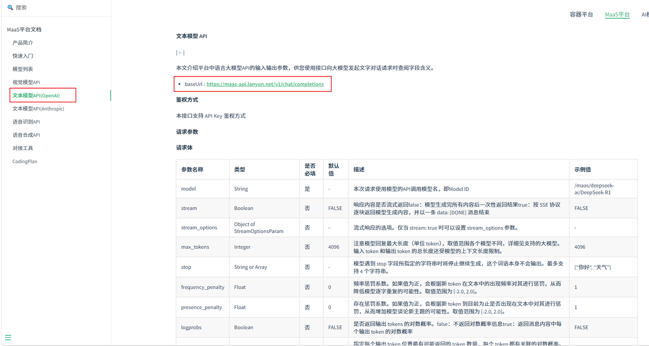 | API URL | https://maas-api.lanyun.net/v1 |