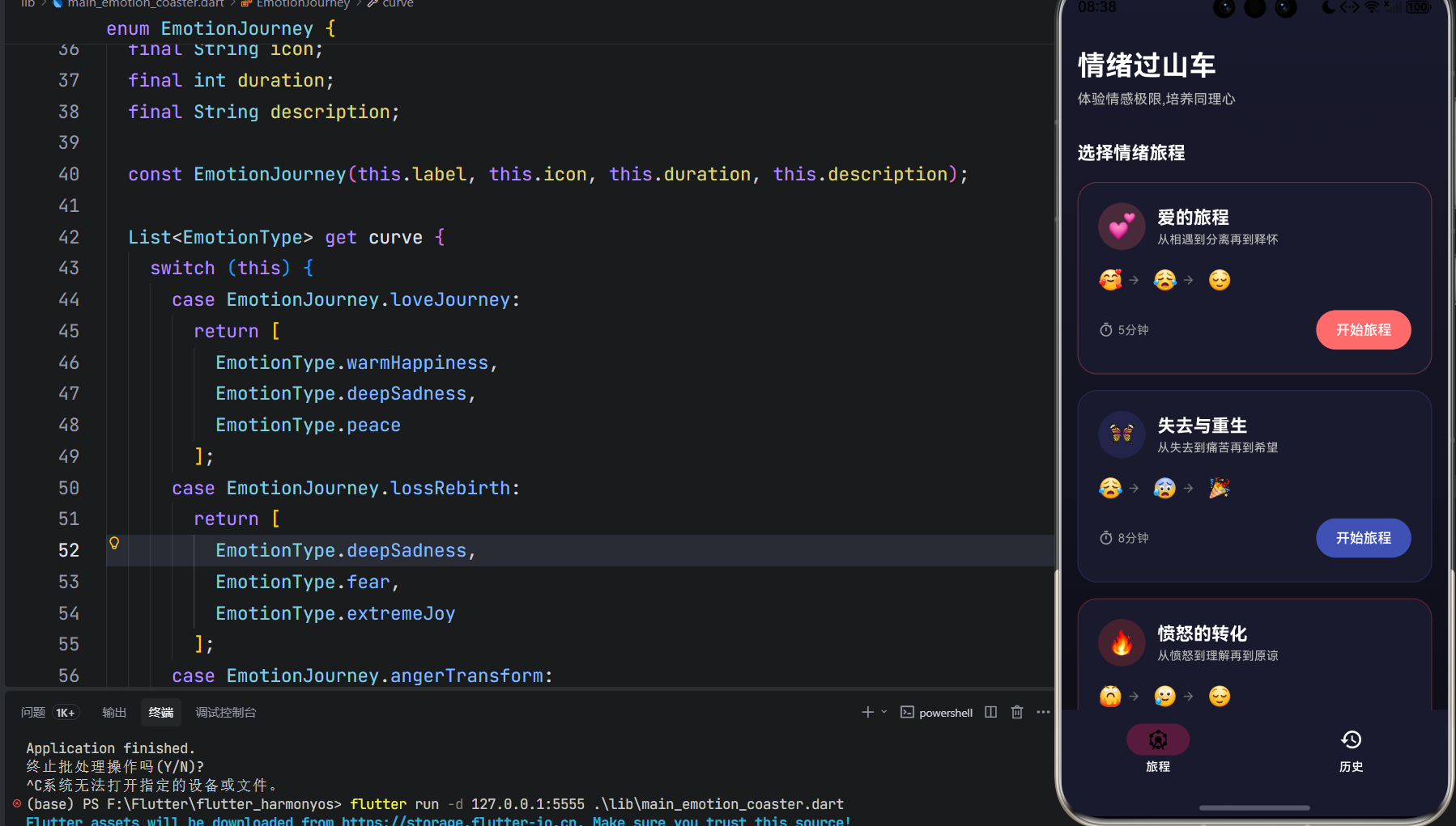 情绪过山车应用通过精心设计的情绪旅程,让用户在安全的环境中体验情感的极限波动。应用支持5种情绪旅程,8种情绪类型,通过场景引导、反思记录、同理心评分等功能,帮助用户增强心理韧性和同理心。