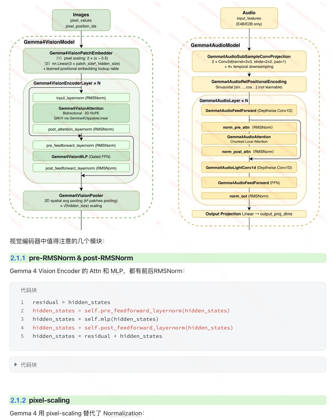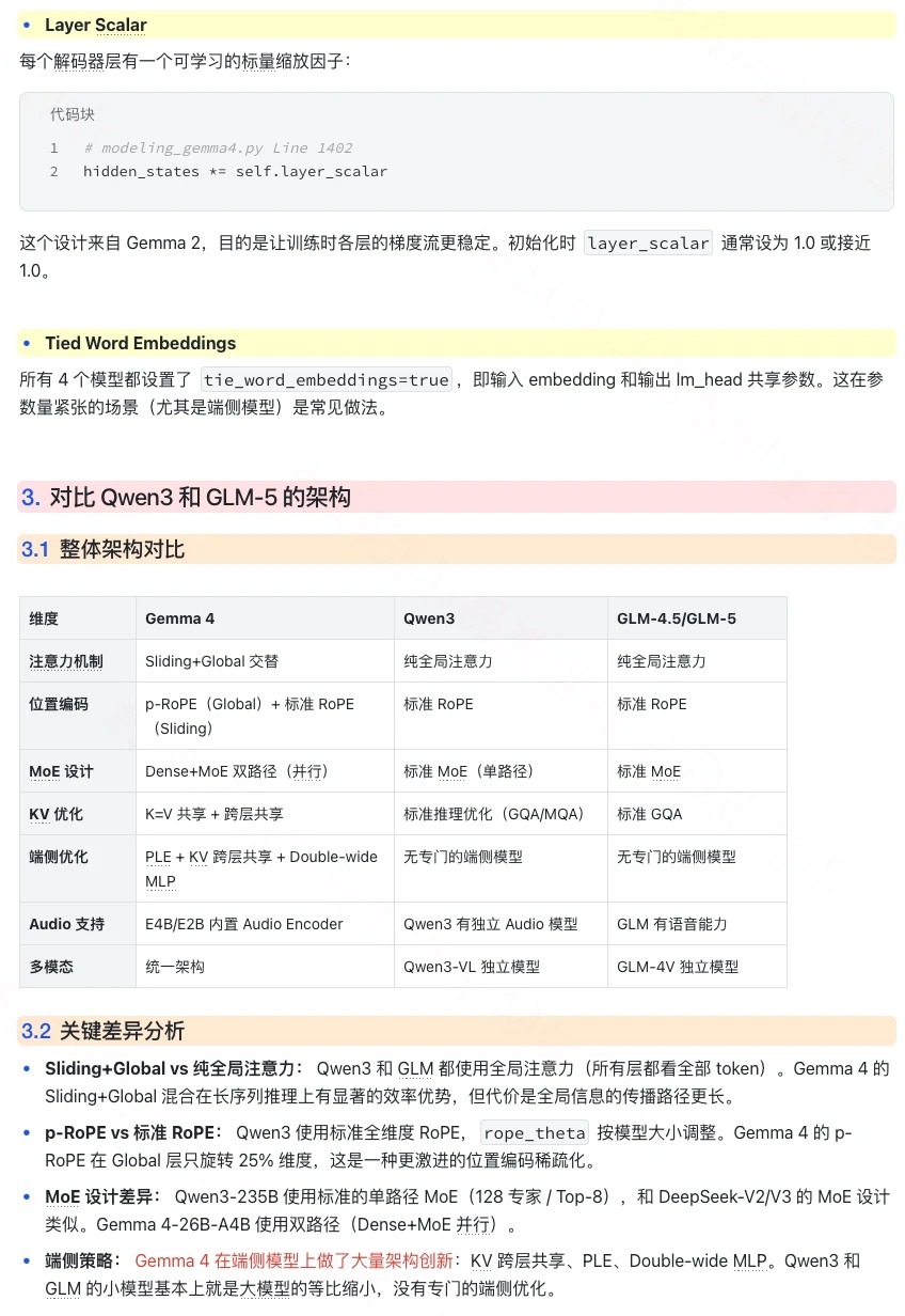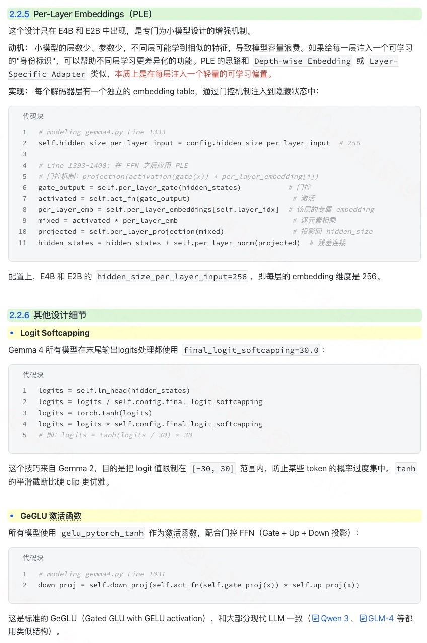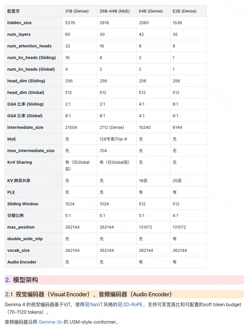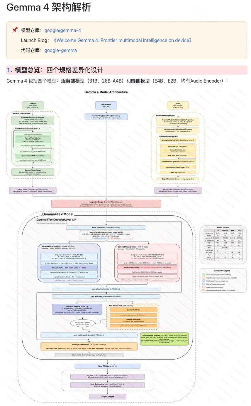 📌 本期图解 Google 开源Gemma 4 架构设计细节,其中端侧模型的架构上有很多值得一看的设计。