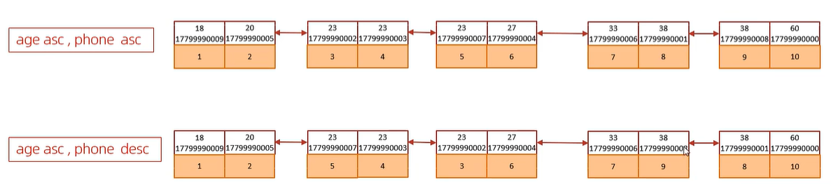 create index idx_user_age_phone_ad on tb_user(age asc,phone desc);