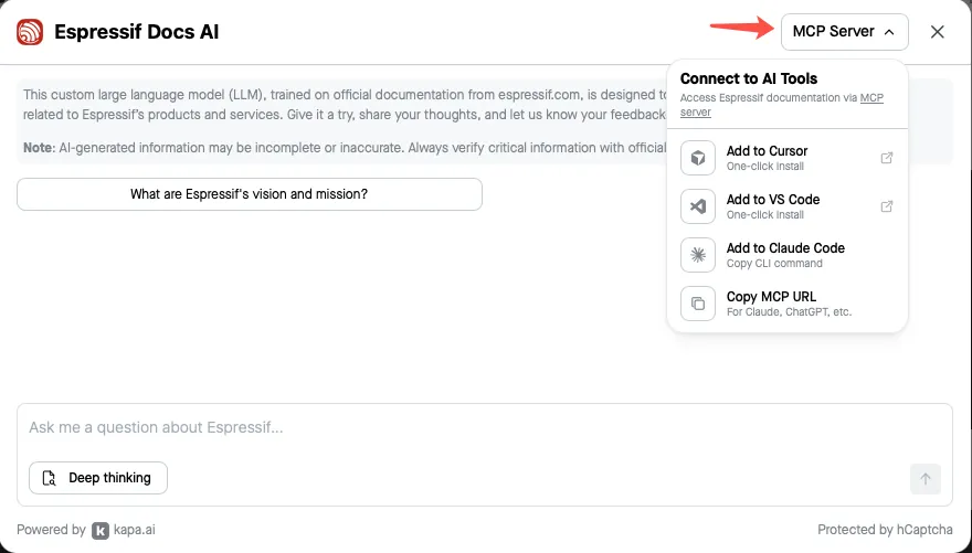 MCP 服务器和乐鑫文档 AI 助手都能访问最新的乐鑫文档,但适用场景不同。