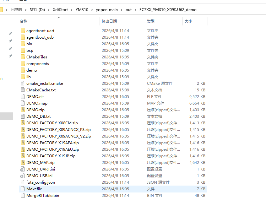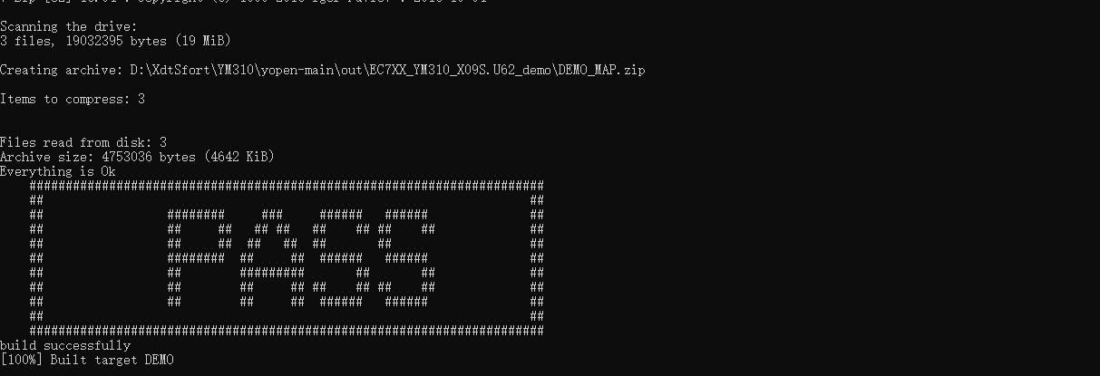 最后以管理员身份在CMD命令行中测试,到当前目录下输入build.bat YM310_X09S.U62 demo