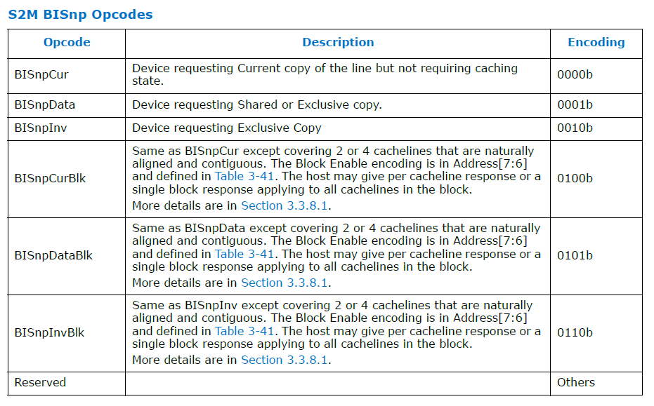 从BIRsp消息的Opcode中可以看出,是为了指示缓存行状态,每个Opcode对应一个缓存行状态。