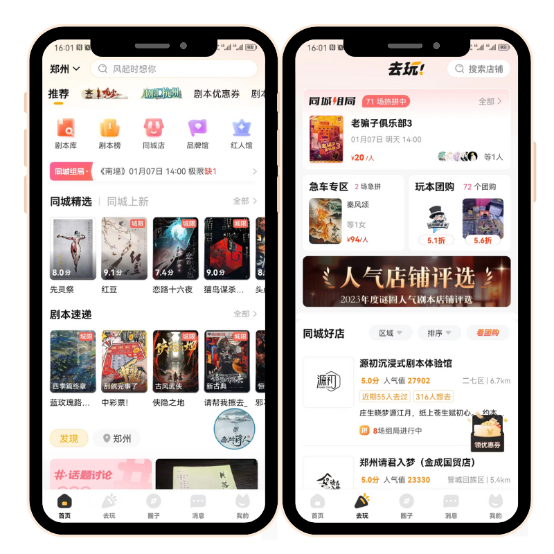 剧本专区版块兼顾丰富性与针对性,精准匹配玩家喜好。按玩法类型划分多个专区,涵盖硬核推理、温情情感、欢乐解压、悬疑惊悚等多种题材,同时设置新手入门专区和进阶挑战专区,帮助不同经验的玩家快速找到适配剧本。剧本详情页详细展示剧情梗概、人物设定、玩本时长及玩家真实反馈,部分剧本提供片段试读,让玩家提前感受剧情氛围,支持收藏功能,方便后续快速发起约玩、回顾心仪剧本。