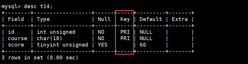 有现象可知------只有id 和 course 同时重复,才会触发主键冲突。