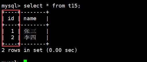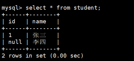 mysql> insert into stu values(100, '张三', 10),(101, '李四',20);