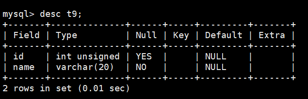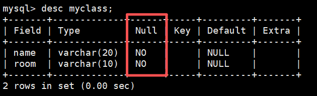 NULL:允许为空(默认)NOT NULL:不允许为空,插入时必须提供值