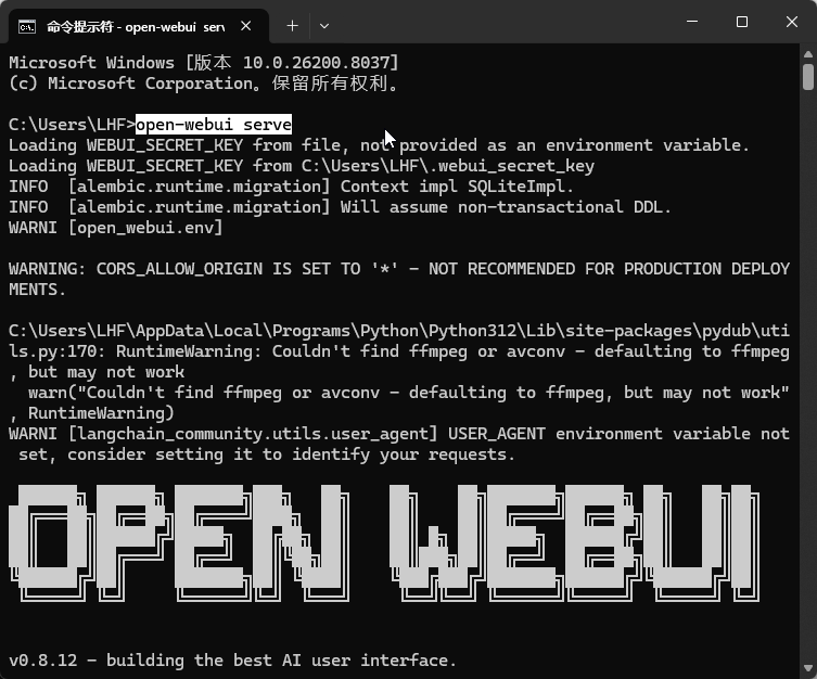 然后就可以open-webui serve启动 Open WebUI 了