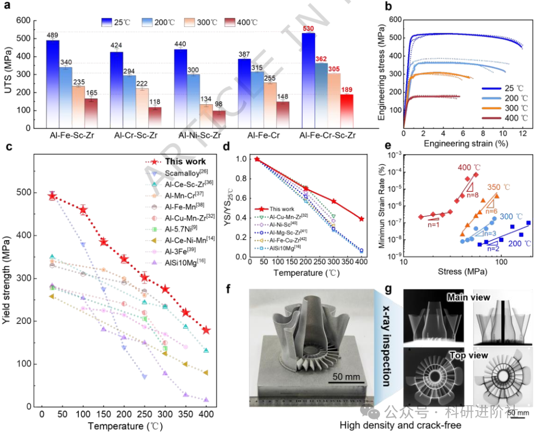 最终,团队确定了Al-Fe-Cr-Sc-Zr作为目标合金,并通过PBF-LB成功制备。