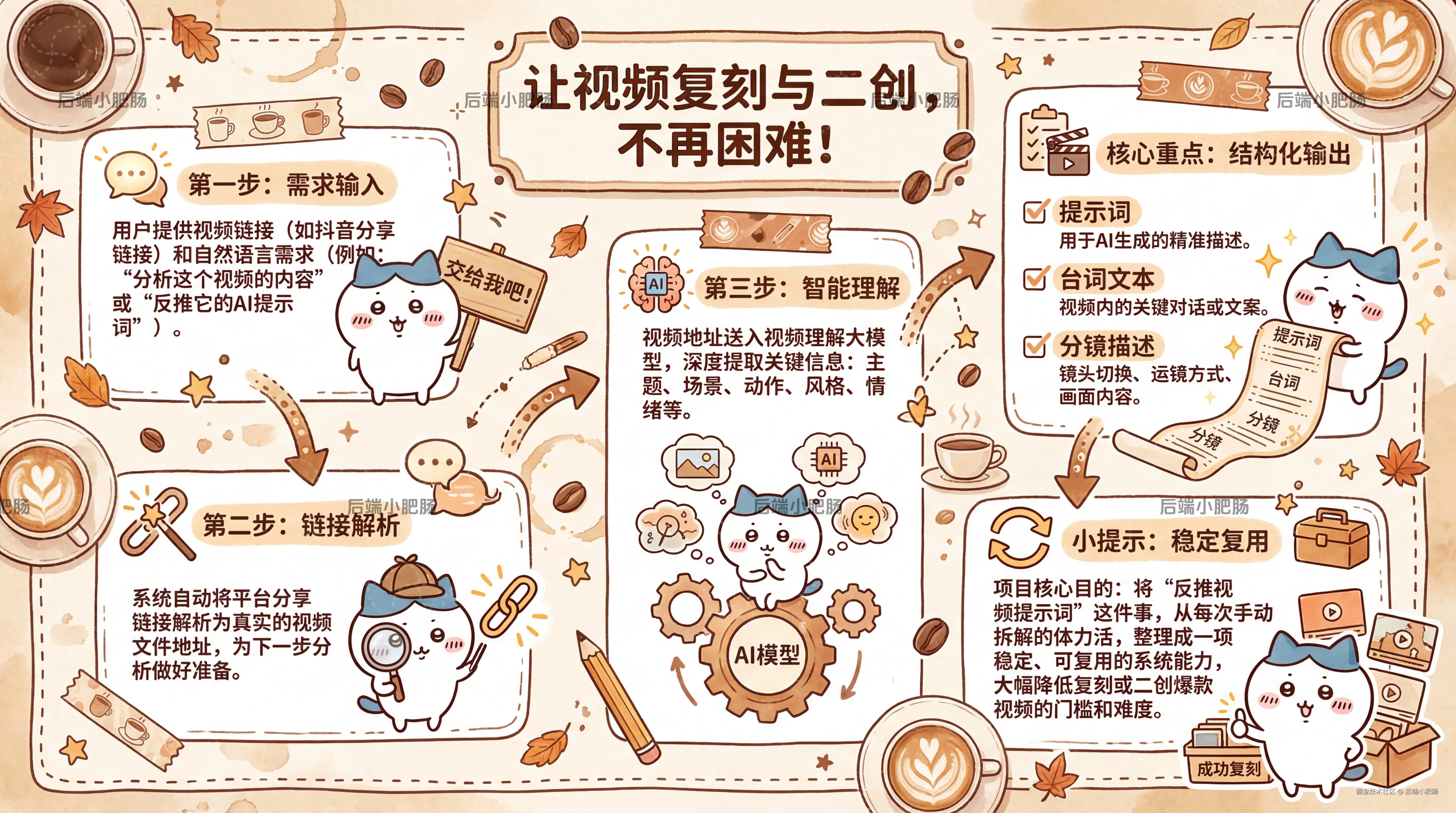 前面先接收用户提供的视频链接 和自然语言需求(如用户想要分析视频内容或反推视频提示词);