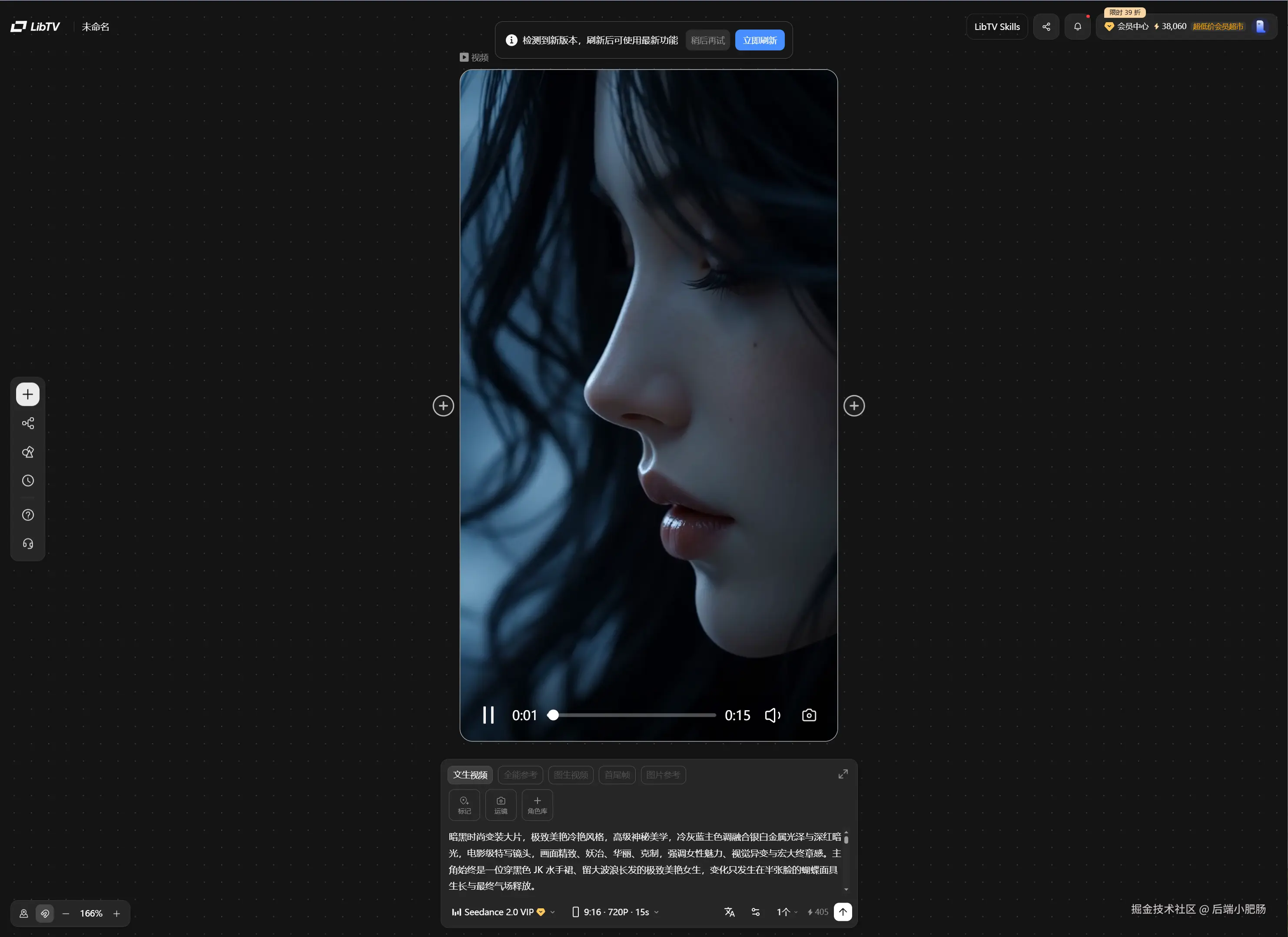 skill 会生成文生图视频提示词,我稍微做了二创用libtv+Seedance2.0,用的文生视频模式: