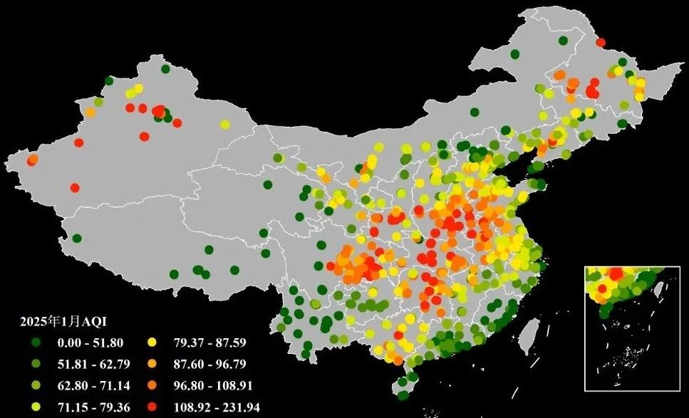 我们再以2025年1月的AQI值为例来看看具体数据: