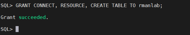 GRANT CONNECT, RESOURCE, CREATE TABLE TO rmanlab;