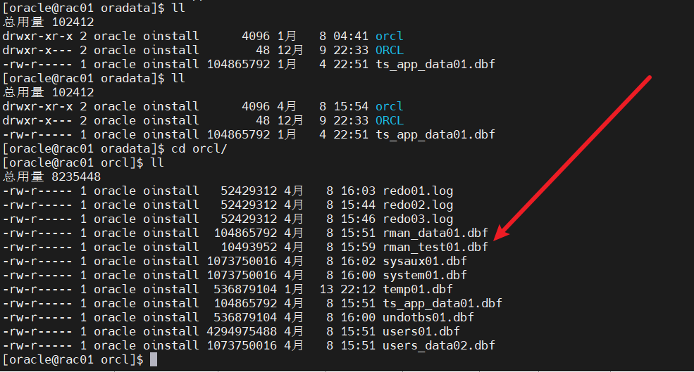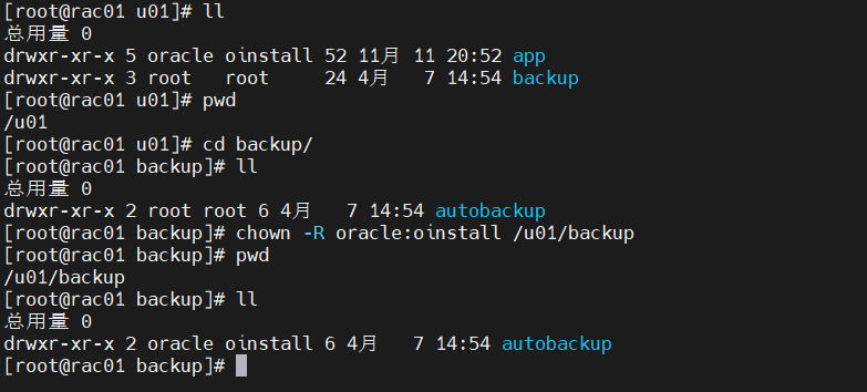 授权:chown -R oracle:oinstall /u01/backup