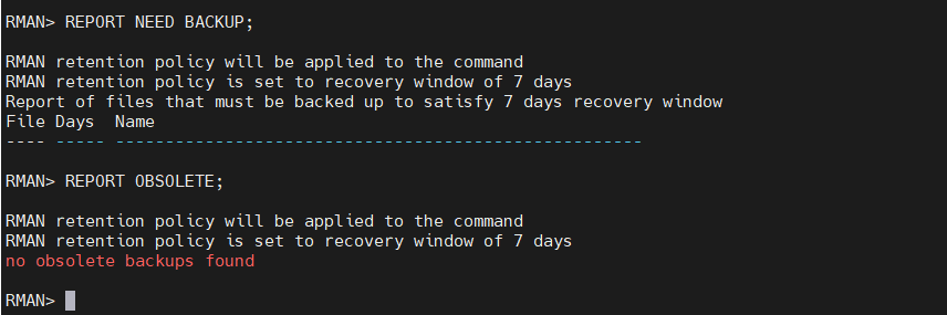 rman target / BACKUP ARCHIVELOG ALL DELETE INPUT TAG 'FINAL_ARCH';