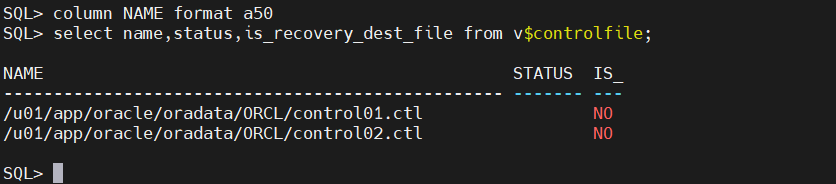 output file name=/u01/app/oracle/oradata/ORCL/control01.ctl