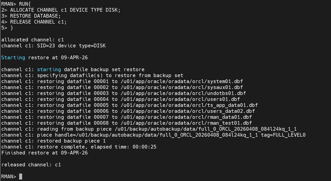 RMAN> RESTORE CONTROLFILE FROM '/u01/backup/autobackup/cf_c-1747225139-20260408-03';