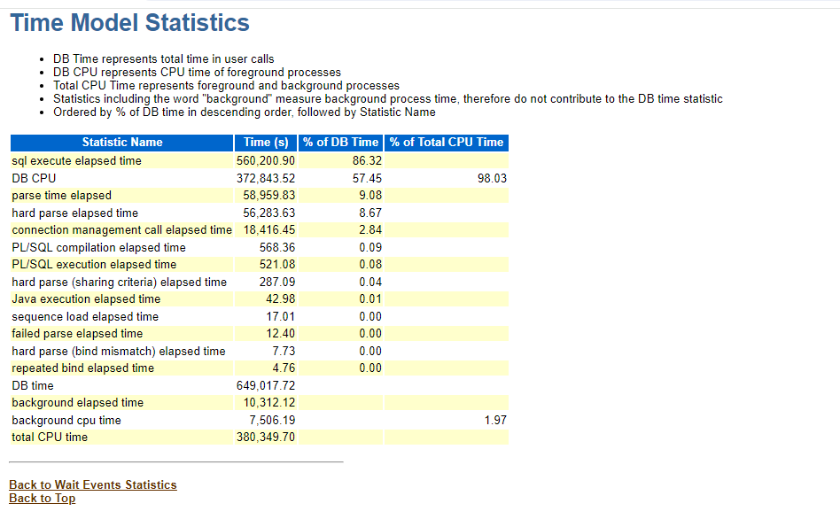 位置: Main Report -> Wait Events Statistics -> Time Model Statisstics。
