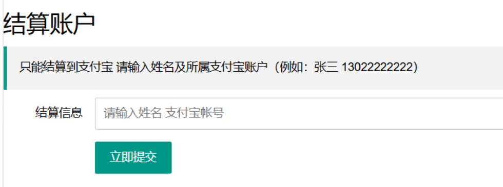 提现输入结算账号后再加入安全payload,此处先只是验证alert弹窗