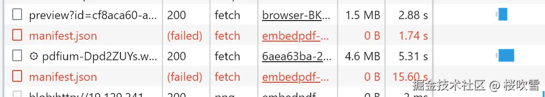 然后就是manifest.json主要是一些盖章的功能,我感觉大部分人不需要这个,如果不需要的话就可以这样阻止加载文件,解决加载过程中一直阻塞pdf预览的问题。