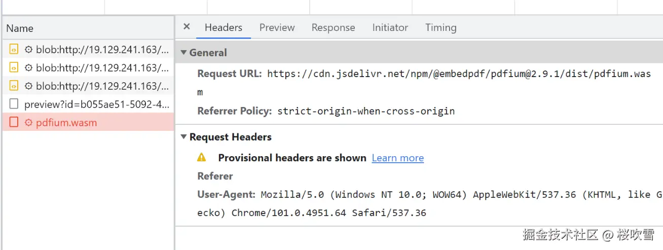 因为dev的时候url引入是/node_modules/xxx的地址,embedpdf似乎会先校验是否是一个正确的URL地址,如果不是就会加载失败。