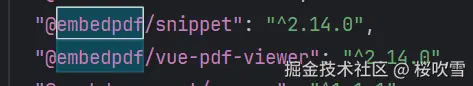 如果使用pnpm这种没有幽灵依赖的包管理,需要手动加一个 @embedpdf/snippet 依赖: