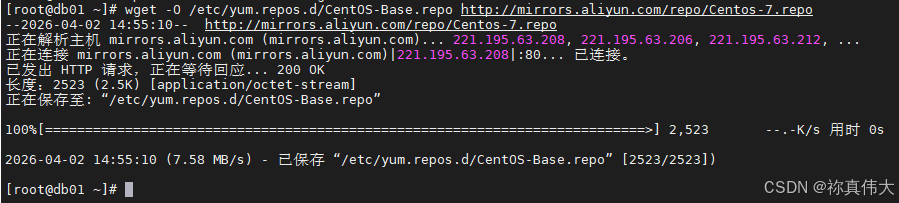 wget -O /etc/yum.repos.d/CentOS-Base.repo http://mirrors.aliyun.com/repo/Centos-7.repo