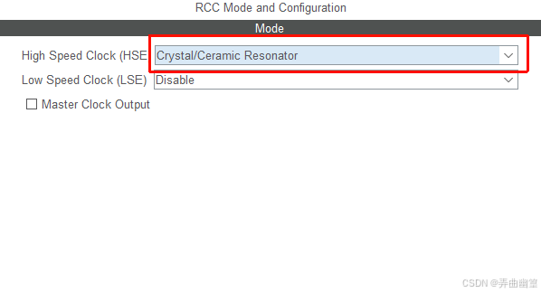 然后配置时钟,高速时钟选择外部晶振。