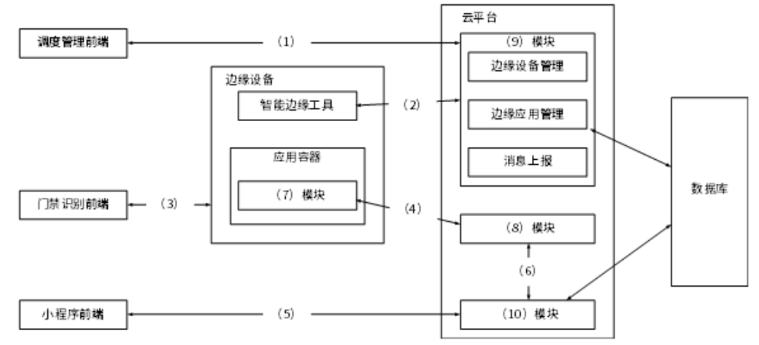 | (7) | 端侧识别 | 边缘设备应用容器中运行的人脸识别模块,对应题目中"端侧识别模块在边缘门禁设备上运行" |