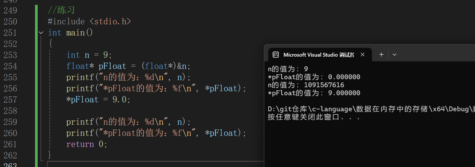 上面的代码中,n 和 *pFloat 在内存中明明是同一个数,为什么浮点数和整数的解读结果会差别这么大?