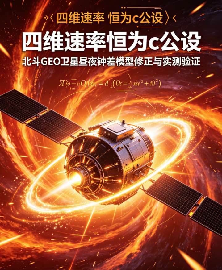 狭义与广义相对论是卫星导航系统钟差修正的核心理论基础,其底层公理为四维时空全域光速不变原理:任意物理客体的四维速度矢量模长恒等于真空光速c(简称v≡c公设)。该公理经过百年实验验证,是全球四大卫星导航系统钟差修正的通用准则,北斗系统每日亿级定位服务已充分验证了其工程有效性。