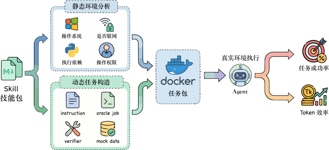 任务构造与可运行验证------从 skills 反向生成可验证的 benchmark 任务。这个别人没做。