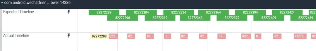 根据 Perfetto 官方文档[19],当帧在屏幕上的实际呈现时间与调度器预期的呈现时间不匹配时,就会产生卡顿。FrameTimeline 为每个有帧在屏幕上显示的应用添加了两个新的轨道: