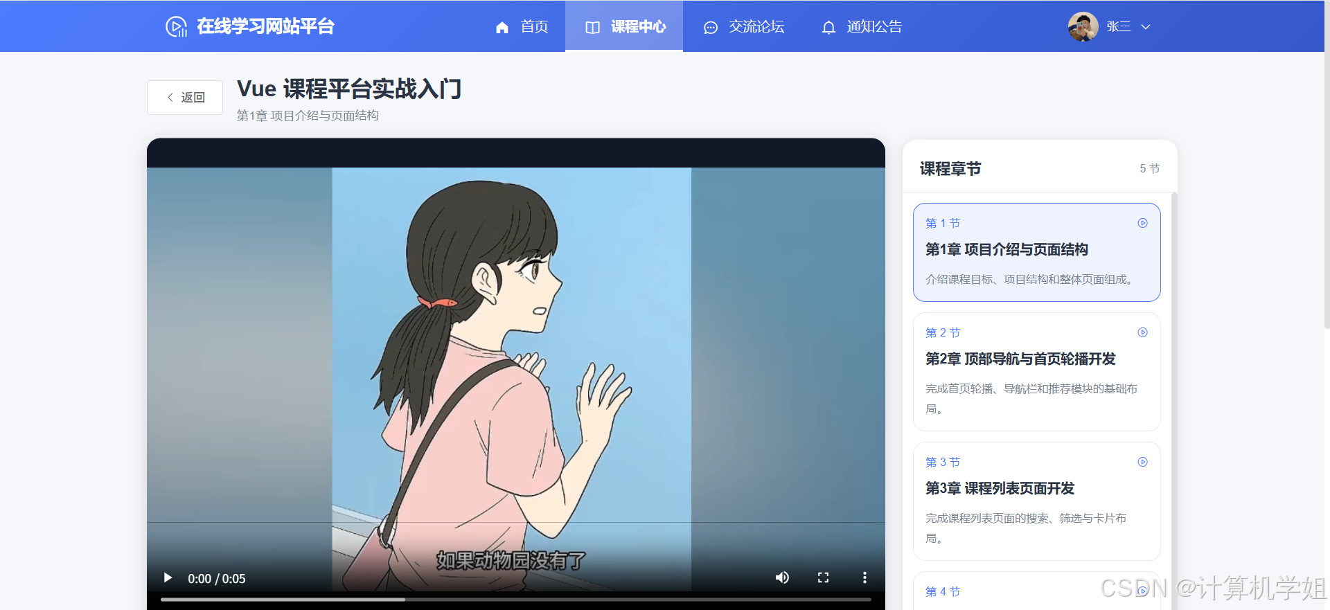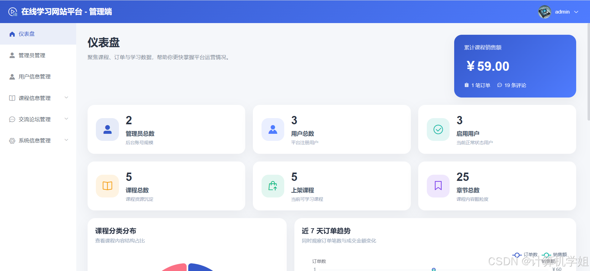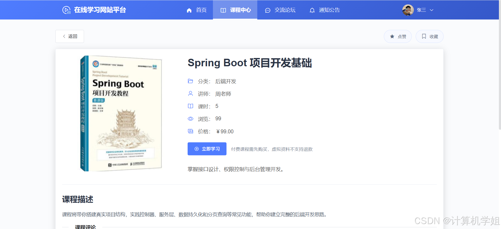 【2026最新】基于Java+SpringBoo+Vue+MySQL的在线学习网站平台,个性化推荐,热门推荐,数据可视化, 课程中心,章节学习,我的课程,课程分类管理,课程信息管理,章节管理,评论管理,课程订单管理,交流论坛管理等