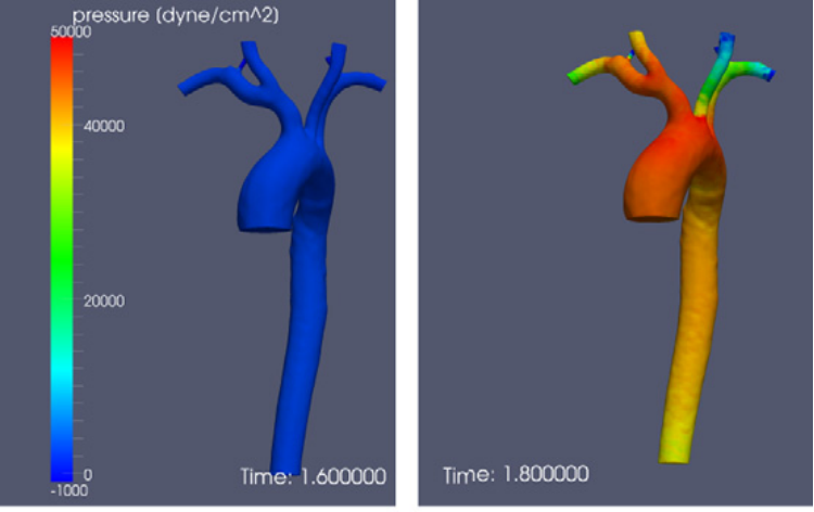 (2)传统仿真:设置血液流体属性(粘度、密度)、血管壁固体属性(弹性模量),进行瞬态流固耦合仿真。