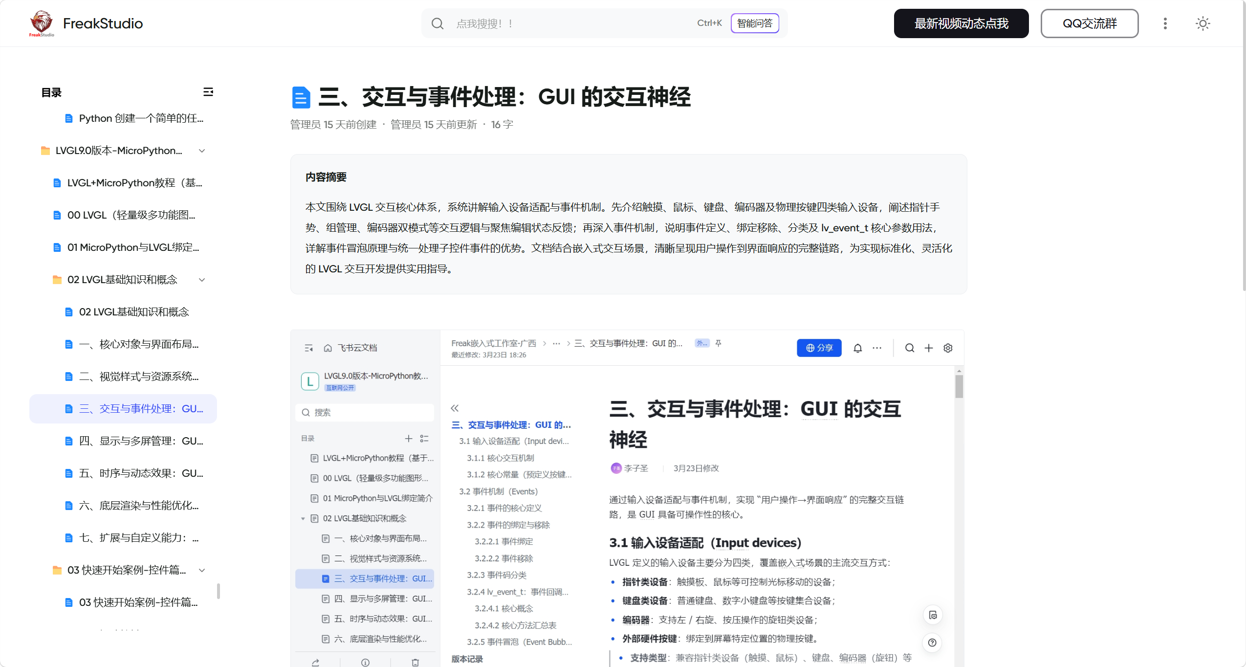 本文是 LVGL 9.0 版本面向 MicroPython 开发的「交互与事件处理」核心知识梳理,相当于嵌入式 GUI 的 "交互神经中枢",完整拆解了从输入设备适配、事件机制到事件冒泡的全链路逻辑,帮开发者打通 "用户操作 → 界面响应" 的完整闭环,是做可交互嵌入式界面必须吃透的核心内容。